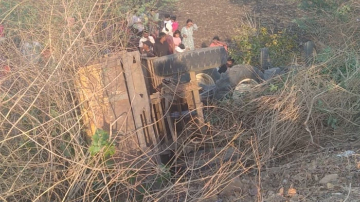 दुर्घटनाग्रस्त ट्रैक्टर ट्रॉली की तस्वीर।HighLights