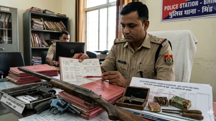 भिंड जिले में फर्जी शस्त्र लाइसेंस के मामले में पुलिस प्रशासन ने जांच का दायरा बढ़ा दिया है। अब ऐसे लाइसेंसधारियों की भी जांच शुरू की गई है, जिनके पास ...और पढ़ें