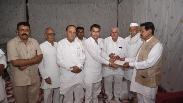 राजस्थान के जोधपुर निवासी हर्षद पिता भेराराम भादू का विवाह नीमगांव निवासी ब्रजेश पिता रामफूल झूरिया की बेटी शीतल झूरिया के साथ सामूहिक विवाह सम्मेलन में हुआ। हर्षद राजस्थान हाईकोर्ट में वकील हैं तो शीतल ने भी उच्च शिक्षा ग्रहण की है। सामूहिक विवाह सम्मेलन में शादी संपन्न होने के बाद बेटी शीतल को घर से विदा करने के दौरान पिता और स्वजन ने दूल्हे हर्षद को 5 लाख रुपये राशि का चेक दिया।