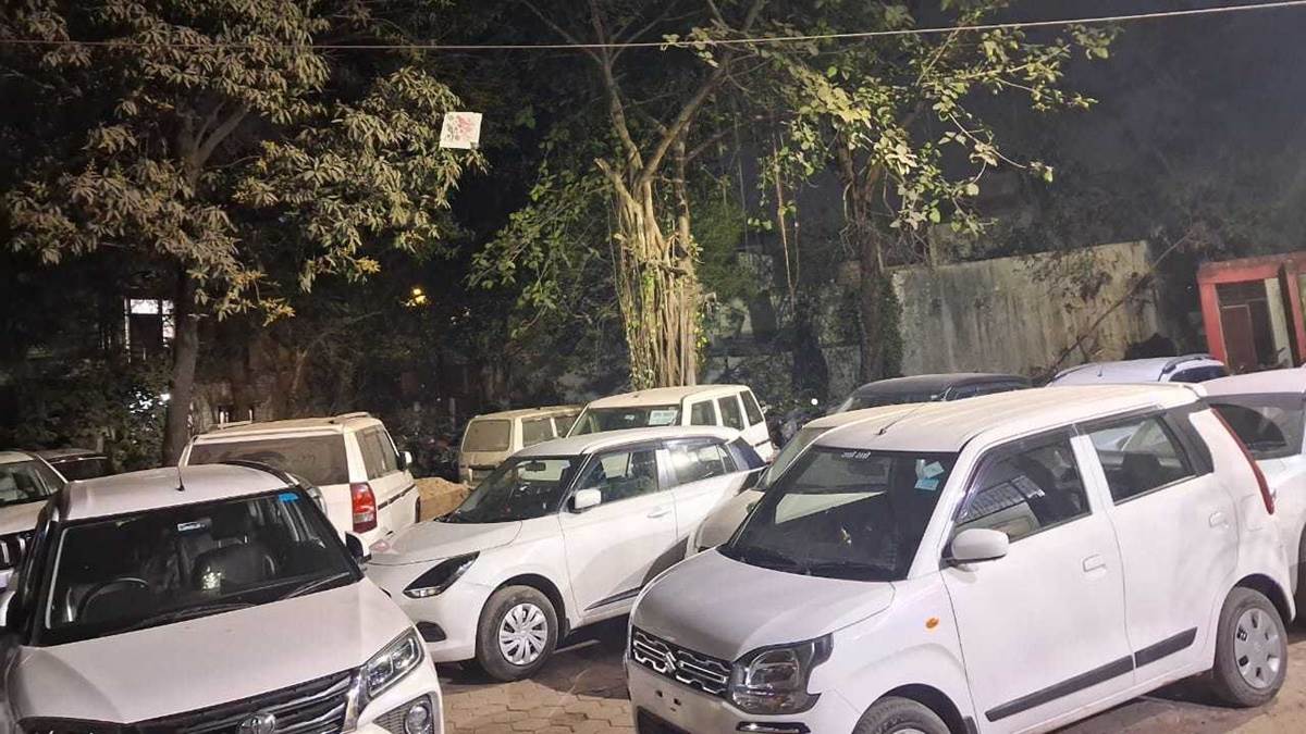 इंदौर के अन्नपूर्णा थाना परिसर में आरोपी से जब्त कारें।HighLights