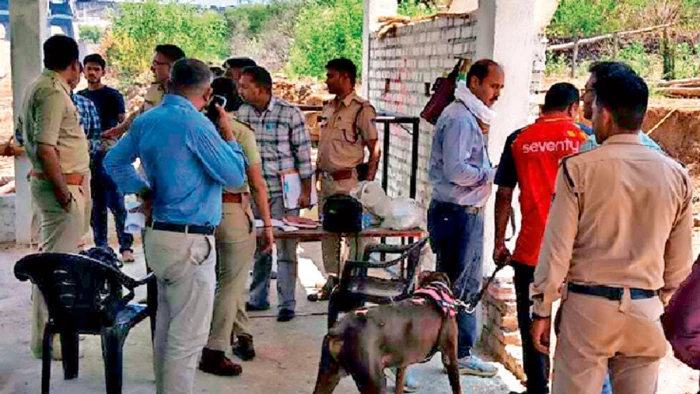 घटनास्थल पर जांच करती एफएसएल की और डॉग स्क्वायड की टीम।HighLights