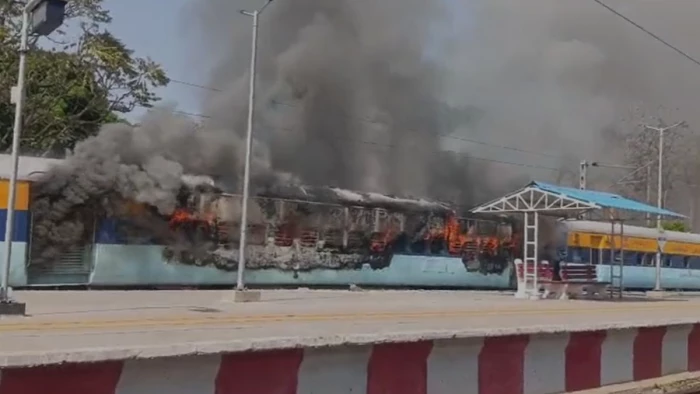 साइडिंग ट्रैक पर खड़ी बोगी में लगी आगHighLights