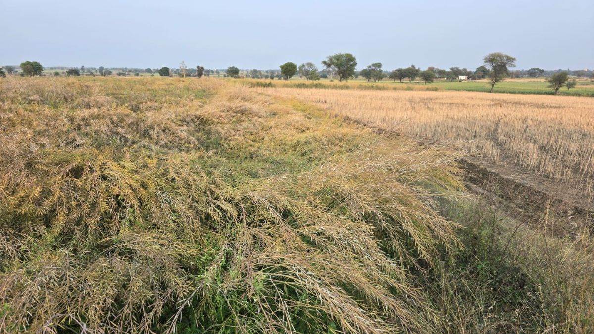 हमारे खेत में सरसों की फसल पकी हुई खड़ी थी। फसल की कटाई चल रही थी, अचानक मौसम बदला और तेज आंधी, बारिश और ओलावृष्टि के कारण फसल के दाने खेत में बिछ गए।