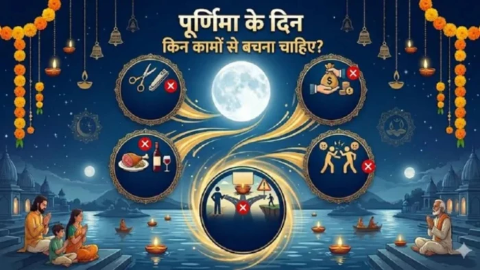 शास्त्रों के अनुसार पूर्णिमा के दिन बाल और नाखून काटना शुभ नहीं माना जाता। इसके अलावा इस दिन धन का लेन-देन भी टालना चाहिए, क्योंकि इससे आर्थिक परेशानी आने की आशंका मानी जाती है। सुबह-शाम के समय अधिक देर तक सोना भी वर्जित माना गया है।